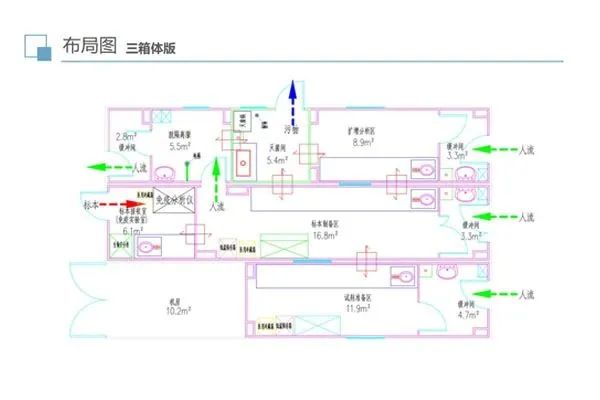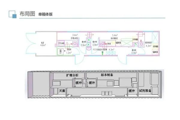 移动pcr方舱实验室,采用标准集装箱体,运输方便,机动性强,可重复利用的安全实验室,采集完样品后可就地进行检测,减少了样本流转的时间,提高了检测效率和准确率。具有模块化设计安装集成度高,生产周期短,安装快等优点。可随时配置于疫情发生的任何场所;可独立于建筑之外,极大减小感染风险及样本流转的时间,提高检测精度;可快速部署,极大减小境外输入风险。
