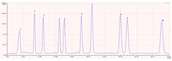 图3.多溴联苯醚标准样品色谱图