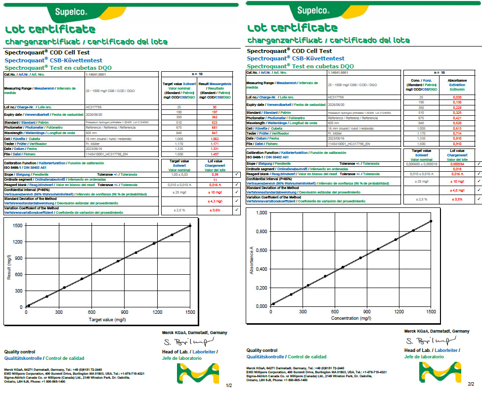 (货号:1.14541.0001,测试范围:25-1500mg/l,符合HJ 828-2017 水质 化学需氧量的测定 重铬酸盐法,以及EPA 410.4,APHA 5220 D,ASTM D1252-06B,ISO 15705等)