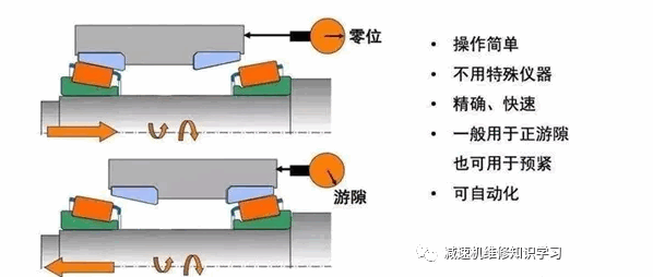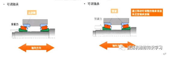 轴承的工作游隙选择是由应用工况(载荷、速度、设计参数)和期望得到的工作状态(寿命、刚度、低的热量产生、维护的便利等等)决定的。TIMKEN公司的轴承轴向调整的方法,供大家参考理解一下。