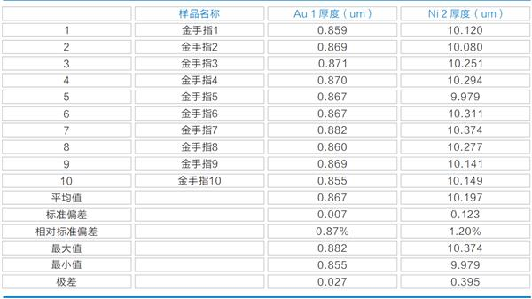结论:经实测,EDX-Thick800针对镀层厚度分析,尤其是微小样品的厚度检测,有着良好的稳定性与精密度,去测试效果可以与超高倍数的电子显微测试媲美。