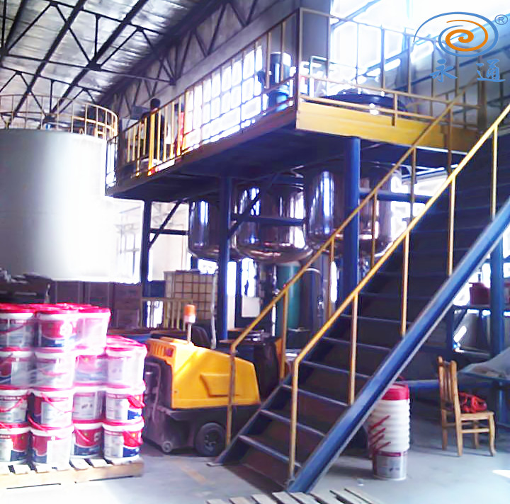 水性涂料生产线主要组成:原料罐、分散罐、成品罐、灌装机、PLC自动控制系统、组成,其主要用于水性涂料的生产,设备具有自动进料、自动称重、自动分散、转速自动调节、自动放料、按批次自动生产,等优点。