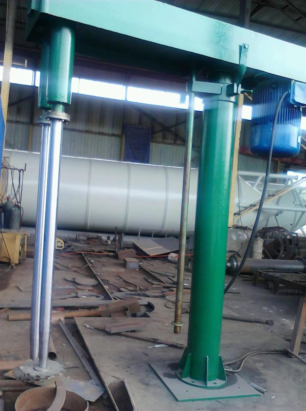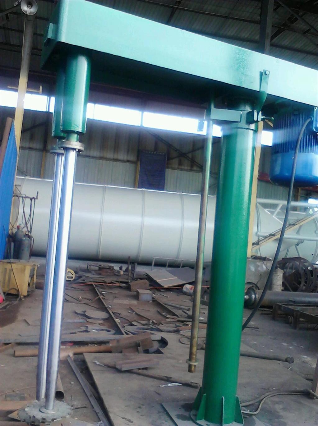 我厂为重庆某客户制造的37kw双轴高速分散机,用一般的高速分散机与这台37kw的高速分散机相比有种小巫见大巫的感觉,它的个头比一般的高速分散机至少高一半,光是液压升降就能达到1800mm。