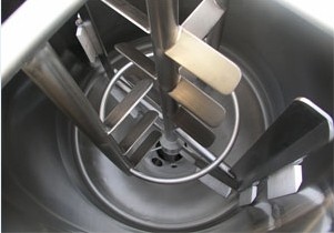 2、真石漆刮壁式搅拌器在工作带动物料进行三维滚动,从而使物料达到快速混合的目的,并且有效的消除了搅拌机中的死角。