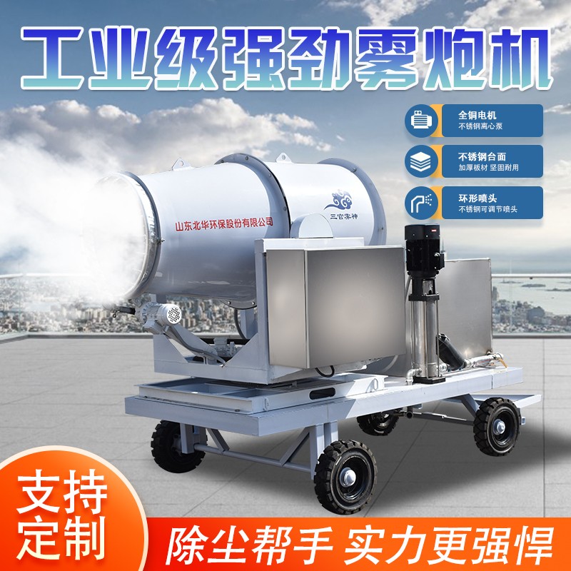 除尘喷雾机常用射程30-70米,内配置3KW-22KW动力,优势在于内部螺旋装置,使得机身更小,射程更远,该喷雾降尘设备发往北京、上海、四川及各大城市环保、除尘、除霾、降温。也发往山西煤矿,全自动降尘系列除尘雾炮机,对于煤矿的扬尘除尘效果很好。可定制生产!支持批量定制(更优惠哦)!该设备看似像车载式降尘喷雾机,其实发货同时是会配备有前后4个车轮、车轴、水箱,控制柜等配套配件! 雾炮机可分为手动/遥控、自动摇头多款机型--可供您任意挑选。