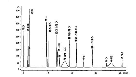 试样经过稀释后,通过气相色谱分析技术使样品中各种挥发性有机化合物分离,定性鉴定被测化合物后,用内标法测试其含量。