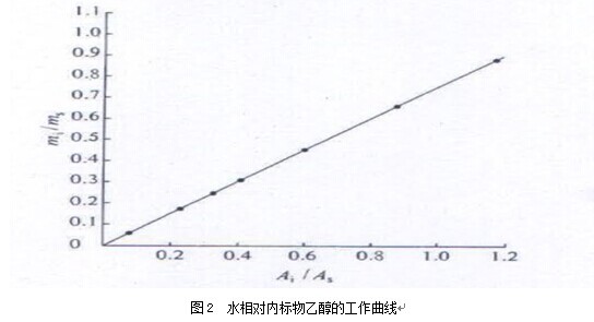 按上述测定方法配制一系列标准溶液,按上述色谱条件分析,以Ai/As为横坐标,mi/ms为纵坐标作工作曲线,见图2.其数据见表1.