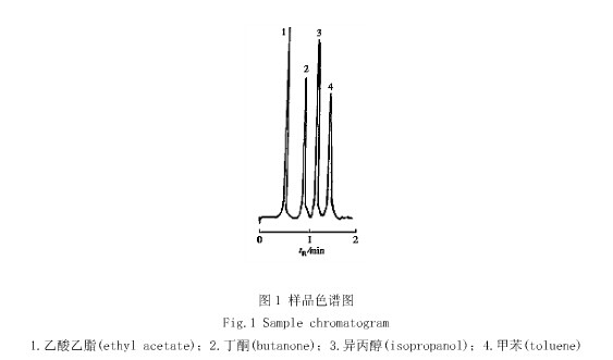 抽取已标定过的乙酸乙酯、 丁酮、 异丙醇和甲苯, 注入已抽真空的配气瓶中, 用玻璃阀平衡内外压力, 再逐次用空气稀释成待用的标准气体系列。
