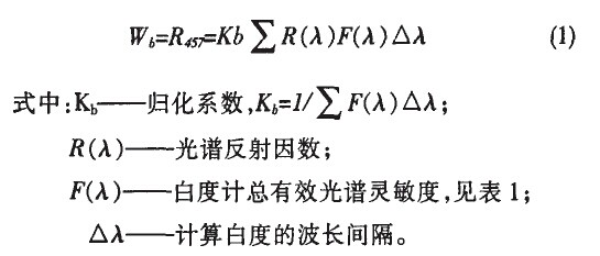 蓝光白度作为在国际标准]SO 2470纸张、纸板-漫蓝反射因数的测量,以及我国纸张、塑料、建材等有关国家标准中都曾经或仍在应用的白度数值,其定义为: