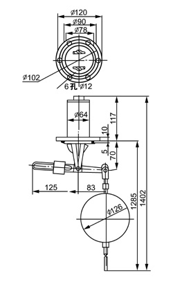 UQK型浮球液位控制器外壳采用非标准凸面安装法兰。