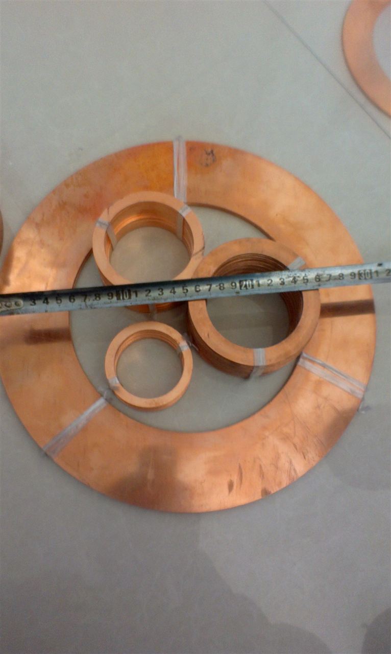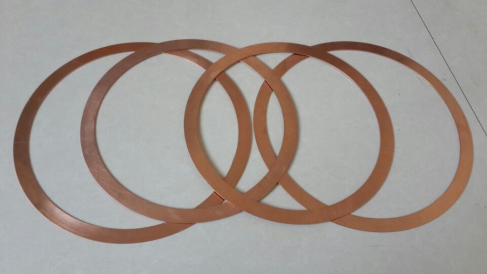 2、密封垫片紫铜垫片外径应比法兰密封面外小,密封垫片内径应比管道内径稍大,两内径的差一般取密封垫片厚度的2倍,以保证压紧后,密封垫片内缘不致伸入容器或管道内,以免妨碍容器或管道中流体的流动。
