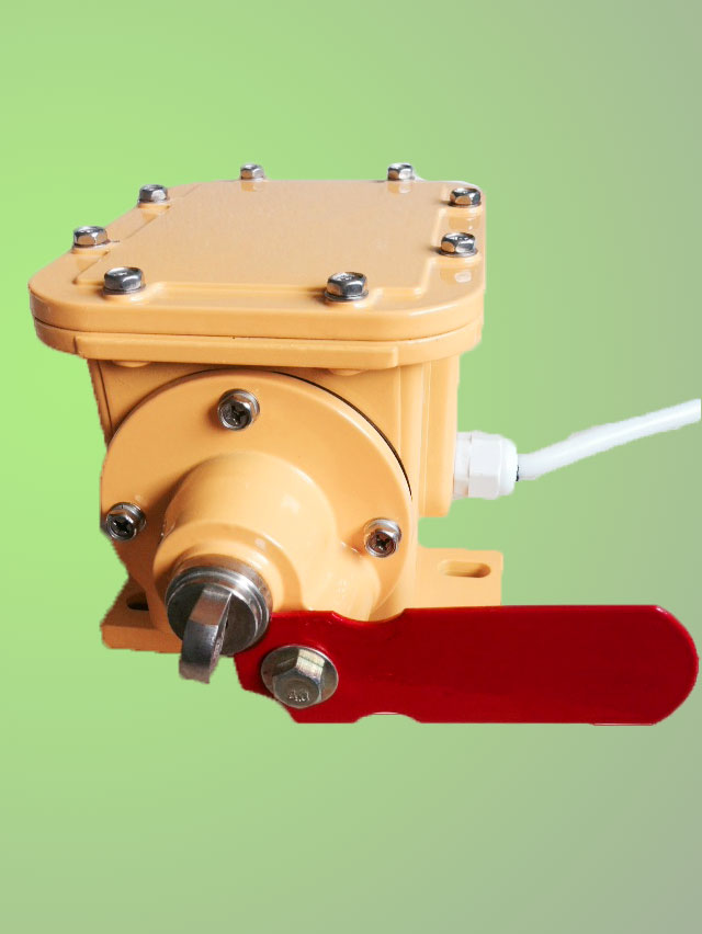 检测纵向撕裂保护装置HY/DXSL-II在输送带出现由于撕裂、戳破、交界处损坏或锐利物凸出时,撕裂开关能给监视人员提供报警信号或关闭输送机。撕裂开关成对安装在传送带两侧,由两段乙浠外套的航空钢丝绳连接起来。航空钢丝绳的一端固定在支撑托架上;另一端连接在撕裂开关的拉环,两段航空钢丝绳在传送带下形成一个监控面,当物体或撕裂的皮带悬吊下来、扫落到航空钢丝绳时,航空钢丝绳拉动撕裂开关拉环使其动作,撕裂开关发出警报信号或停机信号。