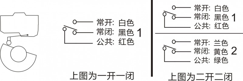 红线和兰线 为常闭接点,黑线和黄线为常开接点。