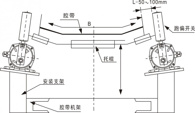1.跑偏开关设在输送带两侧,立辊应与输送带边平面垂直,并使输送带两边位于立辊高度1/3处。