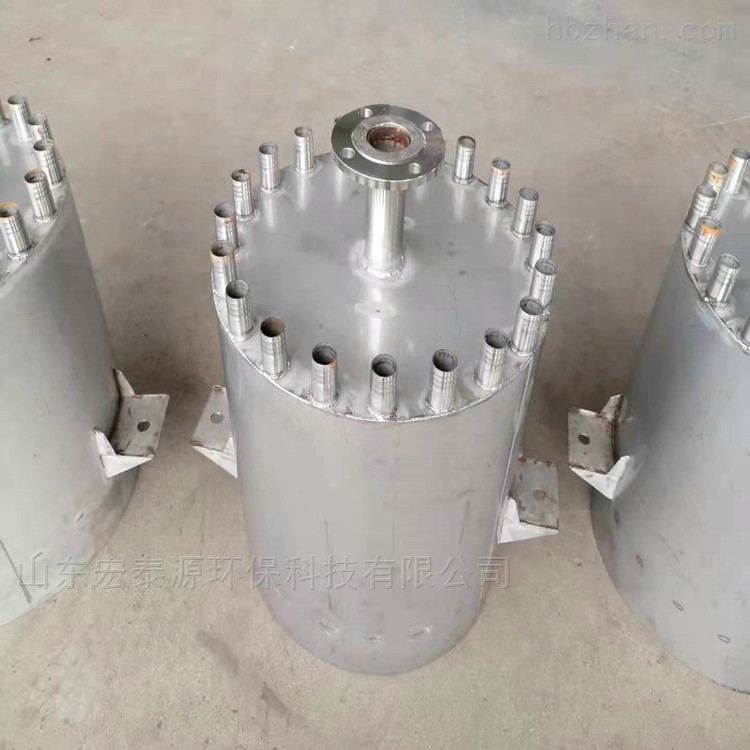 多点布水器是我公司技术部工程师经过技术研发,结合实践经验设计的一款布水均匀、不易堵塞、效果优良的布水装置,由包括配水器本体、进水干管、布水软管和布水帽。进水干管设置于配水器本体的位置,贯穿于配水器底部,其下端为进水口,上端为出水口。布水软管为软性材质,可顺利穿过生物填料分布于池底。布水帽采用锥形结构,既能防止堵塞又提高了布水的均匀性,是一种理想、高效且布水均匀、清堵方便的布水系统。