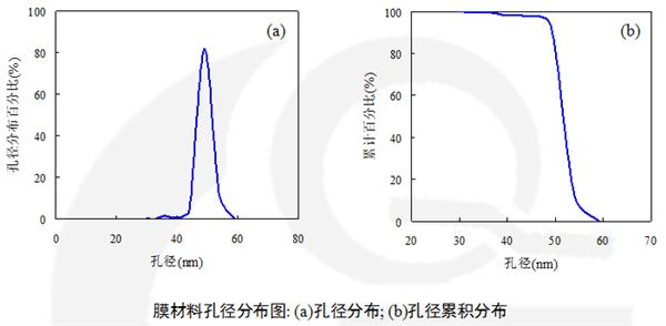 通过对比“湿曲线”和“干曲线”的差异,采用一定的数学模型计算即可获得膜材料的孔径分布情况,由计算软件绘制出孔径分布图和孔径累计分布图。
