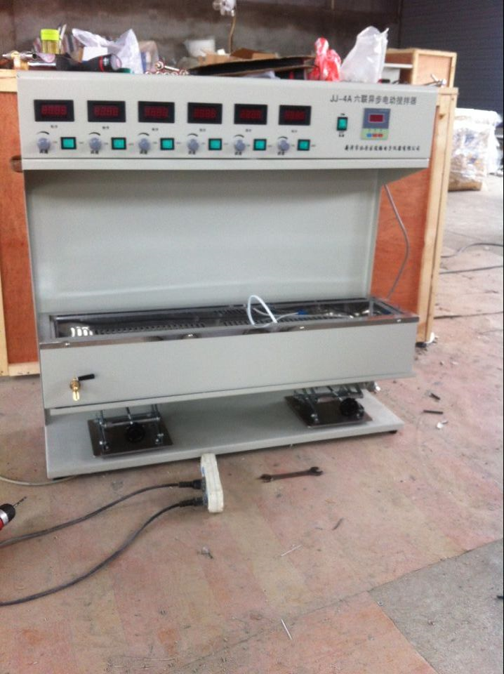 JJ-4A使用说明:当用本仪器时,首先请检查随整机配件是否,关闭各工作开关,然后将搅拌棒分别装在六个电机轴上,并拧紧,将调速旋钮调至zui低位置,将需搅拌的溶液瓶放置在托板上,根据需要调正托板高度使之搅拌棒在溶液瓶中适当位置,并使搅拌棒对准溶液瓶中心。接通电源,将定时旋钮旋到常开(ON)位置或您所需要的定时时间,打开所需要工作的电机电源,再由低速逐渐向高速调至您所需工作速度。