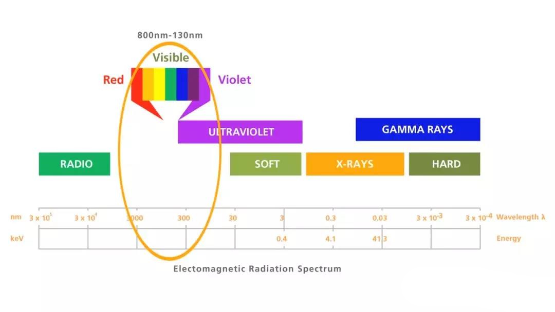 OES使用的电磁光谱包括可见光谱以及部分紫外光谱。波长范围为130nm到约800nm。