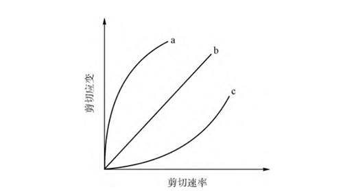 图1假塑性流体 (a)、牛顿流体 (b) 和胀塑性流体 (c) 的江文业线