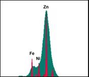 上图显示了这一点。红色峰值显示SDD光谱,绿色区域显示使用比例计数器获得的同一样品的光谱。您可看到,SDD更易识别和测量此样品中铁、镍和锌的实际成分。
