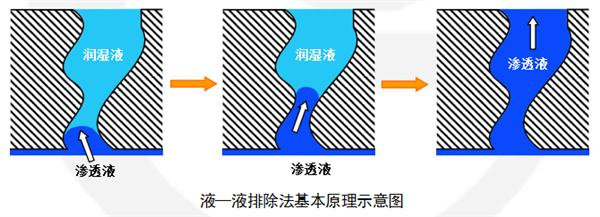 根据液—液排除法的基本原理,将膜的孔道内充满润湿液,用与之不相溶的另一液体作为渗透液压入膜孔道,由于液体在孔道中受毛细管张力作用,孔道的孔径越大则润湿液越容易被渗透液排出,亦即先被渗透液打开的孔道大。同理,后被打开的孔道小,孔道直径可由开孔压力算出。计算公式如下: