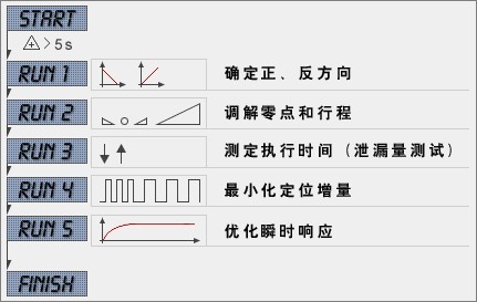 ※SIPART PS2可以在很短的几分钟内,通过简单的菜单进行自动初始化设定(自检过程根据需要设定定位器参数)。