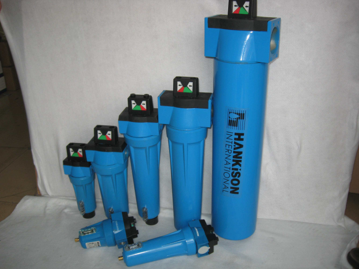 压缩空气过滤器的润滑油、环境空气中的油蒸气和悬浮油滴以及系统中气动元件的润滑用油是压缩空气中油污染的主要来源。其中又以空压机工作中产生的废油为较大来源。目前在使用的空压机,除了离心式和膜片式空压机外,空压机(包括多类所谓无油润滑空压机)都会或多或少劣质污油(油滴、油雾、油蒸气及碳化裂变物)带入用气管道。空压机压缩腔与输气管道起始段间的高温(160-220℃)会引起油的汽化和部分热裂化,使得约5-6%的油被氧化,以碳和漆状膜的形式沉积于空压机与管道内壁中,轻的油份就以蒸气和微小悬浮物的形式被压缩空气带进系统中。总之,对工作时不需要加润滑材料的系统,所使用的压缩空气中,混有的油类和润滑材料都可看作是油污染物质;对工作中需要加进润滑材料的系统,压缩空气中所含的防锈漆、压缩机油均认为是油污染杂质。