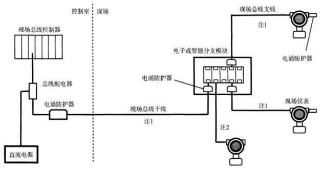图2 现场总线仪表电涌保护器配置示例图