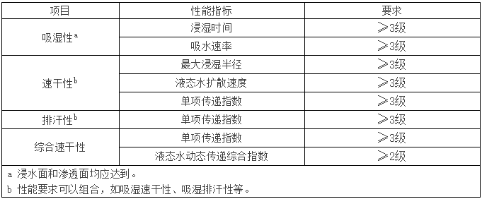 目前吸湿速干排汗性能的测试及评定标准主要有: