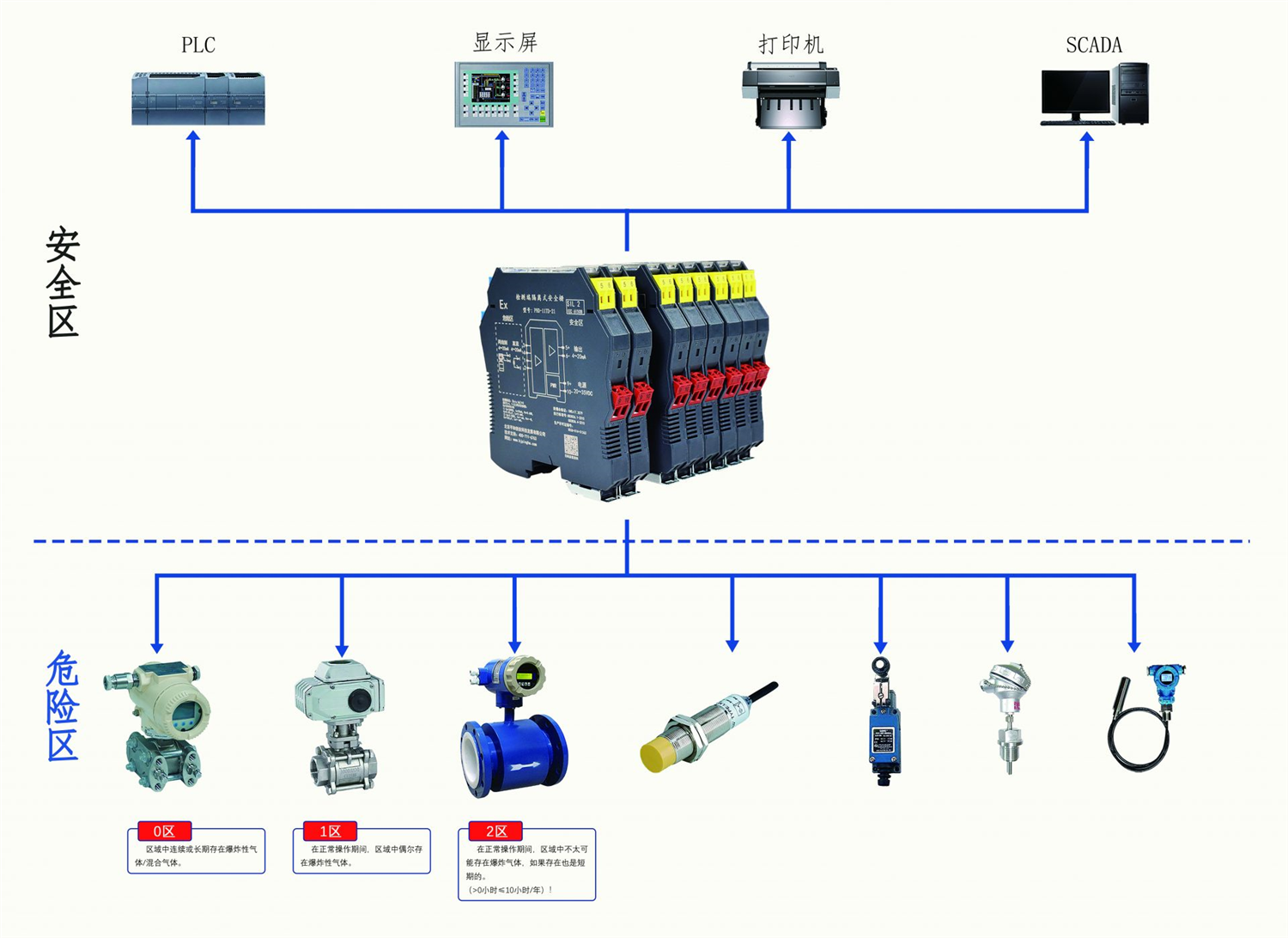 安全栅:当采用本质安全防爆时,在相应的回路中配置隔离式安全栅,选用与仪表匹配的安全栅