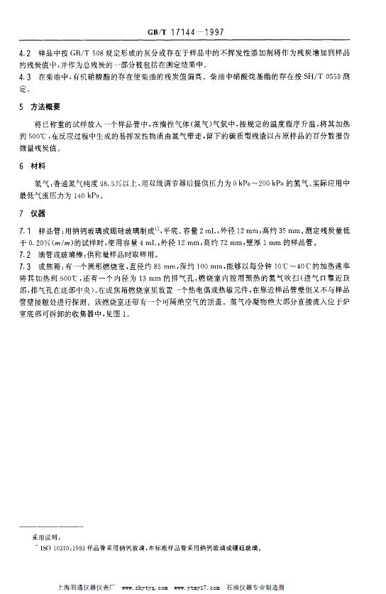 1.本标准规定了用微量法测定石油产品残炭的方法。