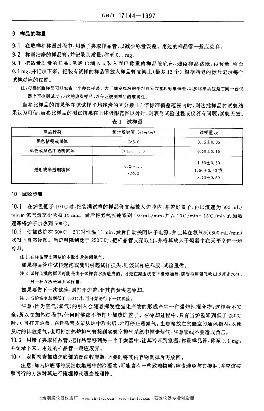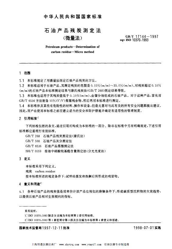 上海羽通仪器仪表厂是专业制造石油仪器的厂家,所有相关仪器均参照执行标准,请放心选型订购!现将微量残炭的标准公布如下: