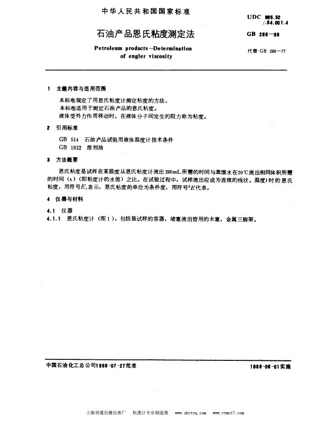 恩氏粘度通常也被称为恩格拉粘度,zui早应用在石油化工行业,以其方便可靠的特点,自1988年得到确认以来沿用至今,并被多个行业引用,是测液体粘度zui常用的方法之一,下面就把这个国标发布出来,供广大客户参考: