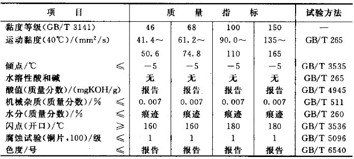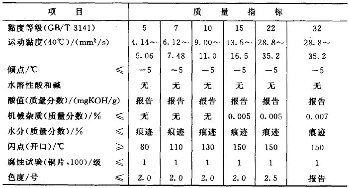 L-AN全损耗系统用油质量标准: