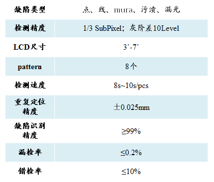 检测精度达到行业水平,最小检测缺陷尺寸0.02mm,可检测分辨率2K以上的超高清屏幕(理论上可扩展到4K屏幕);