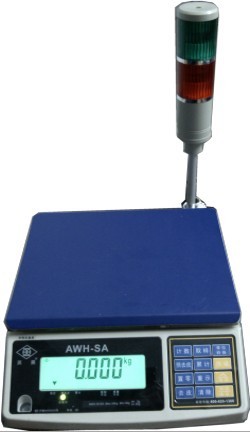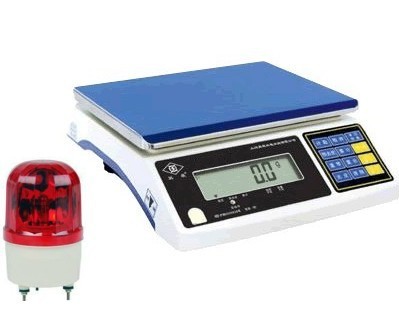 报警电子秤:zui简单讲,就是电子秤连接三色报警灯,我们在称重之前,设定上下限,当电子秤称重数值到了预设值之后,超过上限,红灯闪烁并报警,低于下限,黄灯闪烁并报警,OK值之前不报警,但是绿灯会闪烁