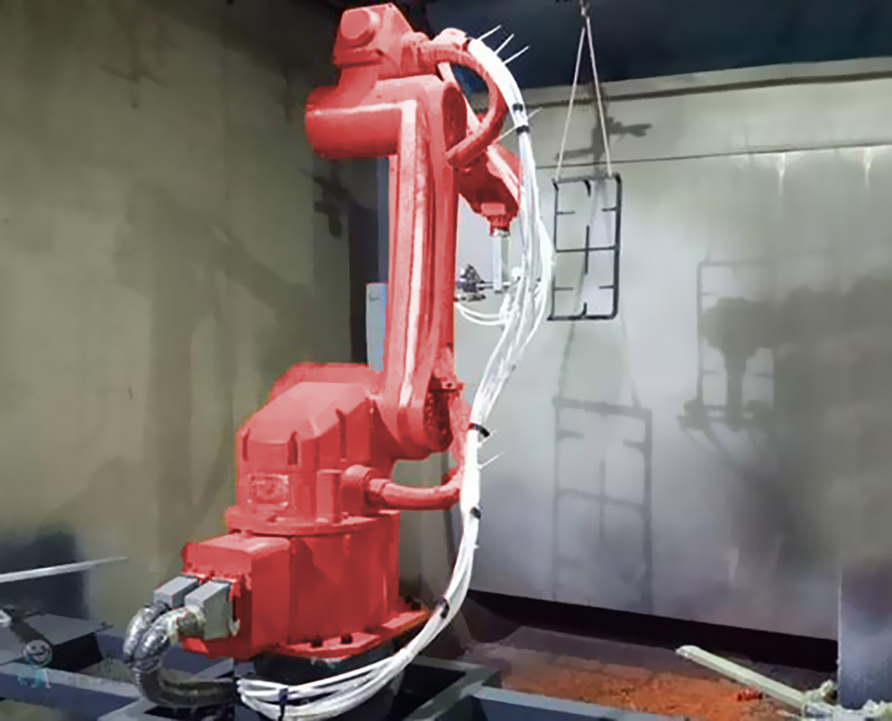 机器人喷涂也有缺点,在喷涂过程中由于油漆吸取有空气进入喷枪会发生喷涂飞溅现象,造成油漆浪费,近距离看,可见微小颗粒。
