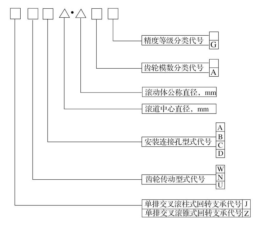 回转支承轴承根据不同的结构形式可以分为四点接触球回转支承轴承、双排异径球回转支承轴承、交叉圆柱滚子回转支承轴承和三排圆柱滚子组合回转支承轴承等不同的结构形式;上述各类轴承按其是否带齿、带齿的分布部位又分为无齿式、外齿式和内齿式等不同结构。回转支承轴承自身带有安装孔、润滑油孔和密封装置,可以满足各种不同工况条件下工作的各类主机的不同需求。