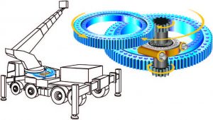 这种开式装配非常方便,上下圆弧滚道的承载角都为90°,能承受很大的轴向力和倾翻力矩。当径向力大于0.1倍的轴向力时滚道须特殊设计。双排球式回转支承的轴向、径向尺寸都比较大,结构坚固,特别适用于要求中等以上直径的塔式起重机、汽车起重机等装卸机械上。