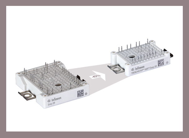 采用TRENCHSTOP ™ IGBT7的EconoPIM ™ 2和3模块系列的电流范围为25 A—200 A。相比上一代IGBT4芯片而言,其具有更高功率密度、更高开关频率,并且可以减少系统散热设计。譬如,EconoPACK™ 2 FS150R12N2T7在重载下可达到37 kW。