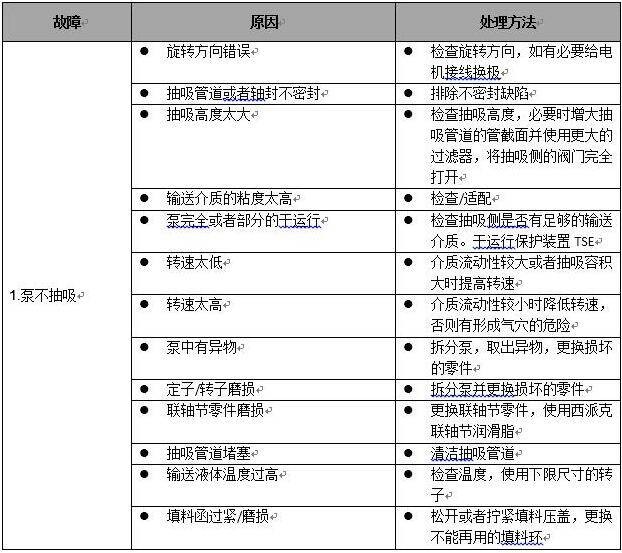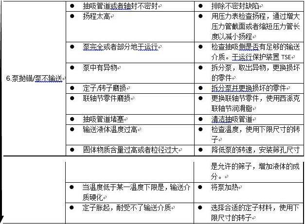 在对设备以及与其有关的装置进行维修前,必须按步骤停机。下表中内容为常见故障及维修方法。