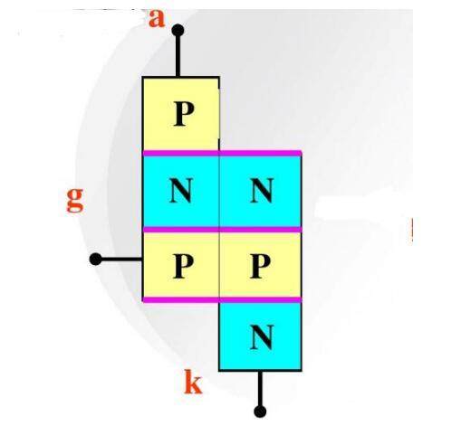单向晶闸管可以看成由三个PN组成,构成一个PNP三极管以及一个NPN三极管,如下图