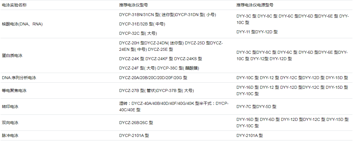 DYY-6C型、DYY-6D型、DYY-6E型、DYY-11型、DYY-12型、DYY-12C型、DYY-12D型适宜高校学生实验和农业种子纯度检测中样品数量较多,一机多槽的电泳实验。