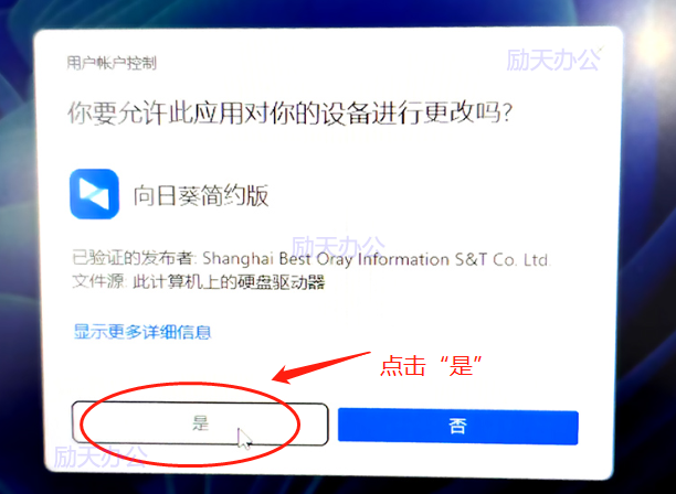 注:WIN8/10/11系统会提示账户控制选项,请选择“是”,其他系统无提示可以直接跳过此步骤!