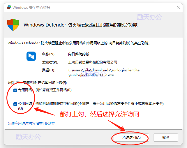 3、如跳出防火墙提示,请选择允许访问,第三方防火墙也参照此操作。