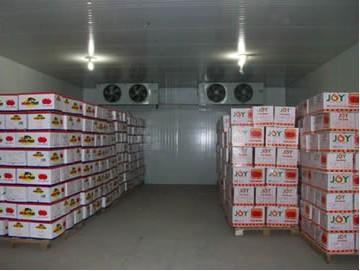 水果保鲜冷库贮藏是抑制微生物和酶的活性,延长水果蔬菜长存期的一种贮藏方式。保鲜冷库技术是现代水果蔬菜低温保鲜的主要方式。水果蔬菜的保鲜温度范围为0℃~15℃,保鲜贮藏可以降低病源菌的发生率和果实的腐烂率,还可以减缓果品的呼吸代谢过程,从而达到阻止衰败,延长贮藏期的目的。现代化冷冻保鲜设备的出现,使保鲜技术可以在快速冻结以后再进行,大大地提高了保鲜贮藏水果蔬菜的品质。