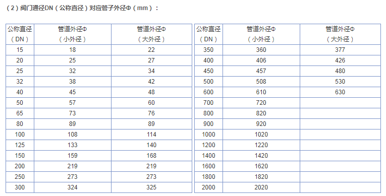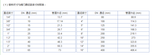 阀门口径大小与管道的尺寸有着必然的联系,通常管道内径对应阀门的口径也即 DN,阀门的口径需要根据实际的参数计算得出,一般管道都会较大写,阀门实际要小写,主要取决于阀门位置需要控制的流量大小,而管道尺寸只需要流通能力够就行了。
