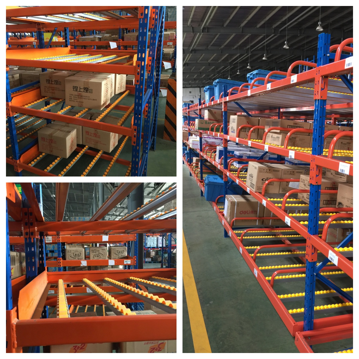 空间利用更高效流利式货架因无需预留叉车通道,存储密度比传统货架提高 30%-50%。某电商企业 8000㎡仓库部署后,存储量从 1.2 万托盘位增加到 2 万托盘位,年减少租金支出 180 万元。货架层高可按 50mm 或 75mm 的倍数调节,能存放 3 米到 12 米长度的物料,搭配网框附件可对边角料进行规范管理。