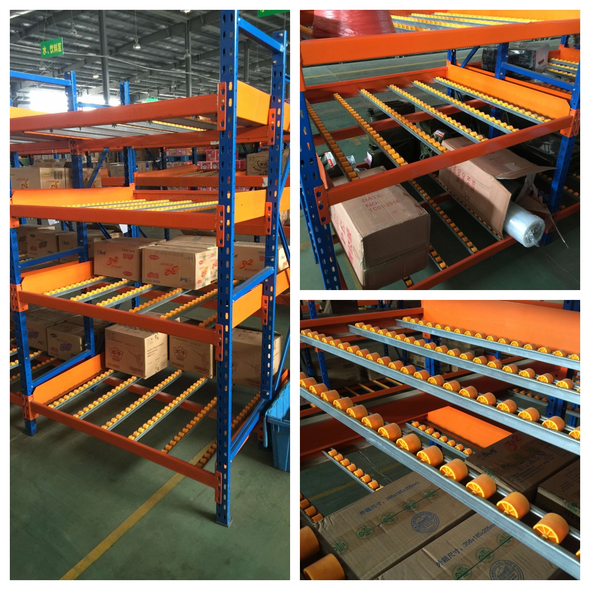 中粤华腾流利式货架以重力滑动为基础设计,通过 3-5° 倾斜的滑道让货物自然滑移,符合先出(FIFO)的作业规范。滑道采用铝合金流利条,单滚轮可承载 5-6kg,根据货物重量不同,每条流道可配置 1-4 根流利条,实现每层 200-1000kg 的承重范围。