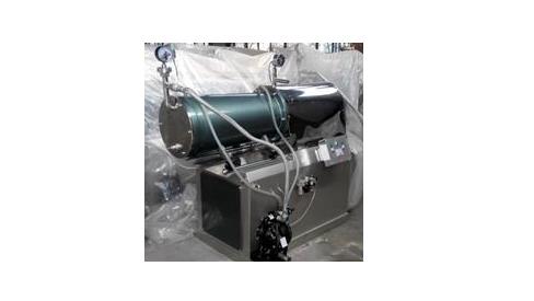 该设备是利用料泵将经过搅拌机预分散润湿处理后的固-液相混合物料输入筒体内,物料和筒体内的研磨介质一起被高速旋转的分散器搅动,从而使物料中的固体微粒和研磨介质相互间产生更加强烈的碰撞、摩擦、剪切作用,达到加快磨细微粒和分散聚集体的目的。